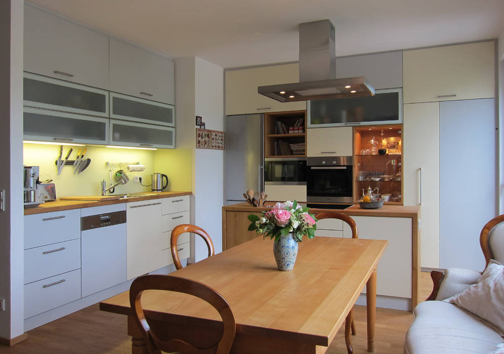Modernes Wohn Esszimmer Küche Mit Trennwand. Offener wohn essbereich mit küche. Offene küche esszimmer wohnzimmer in einem raum.